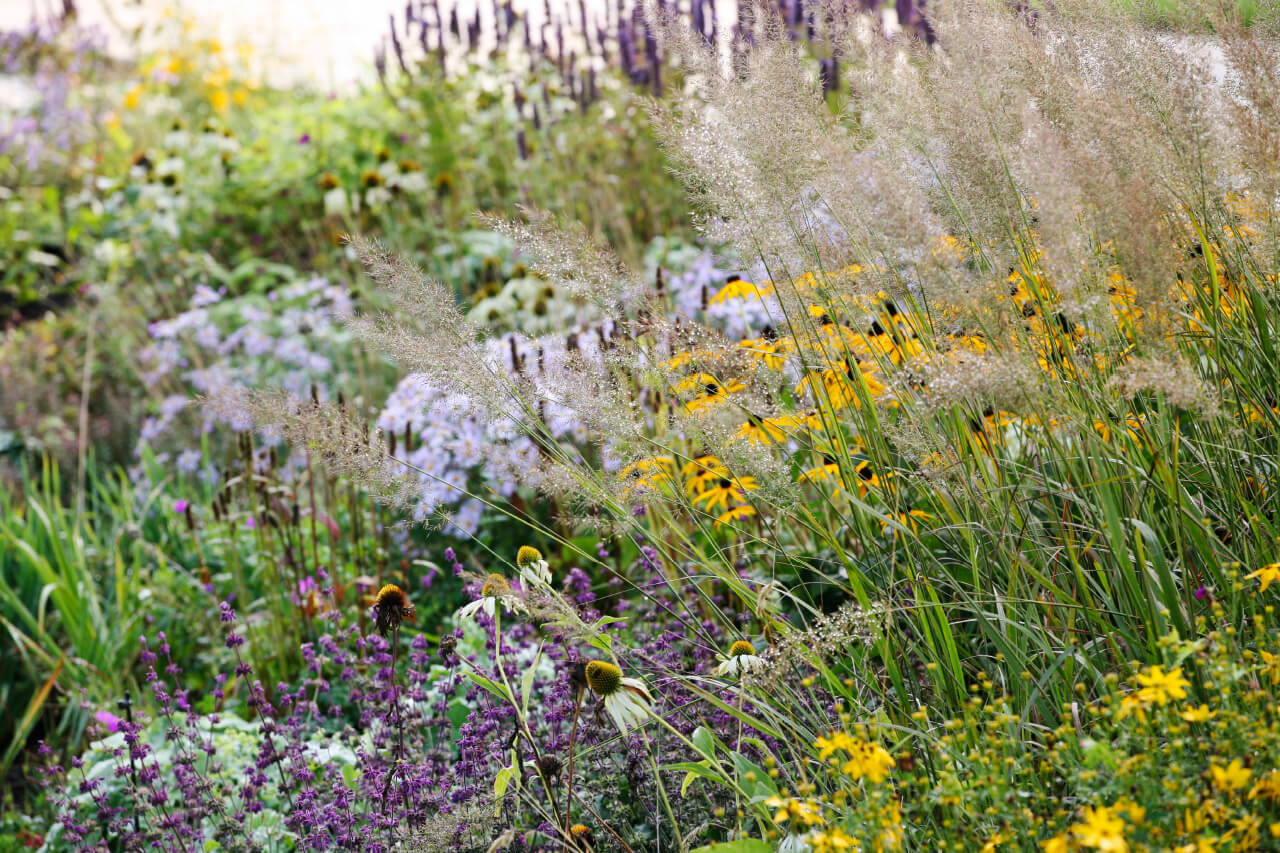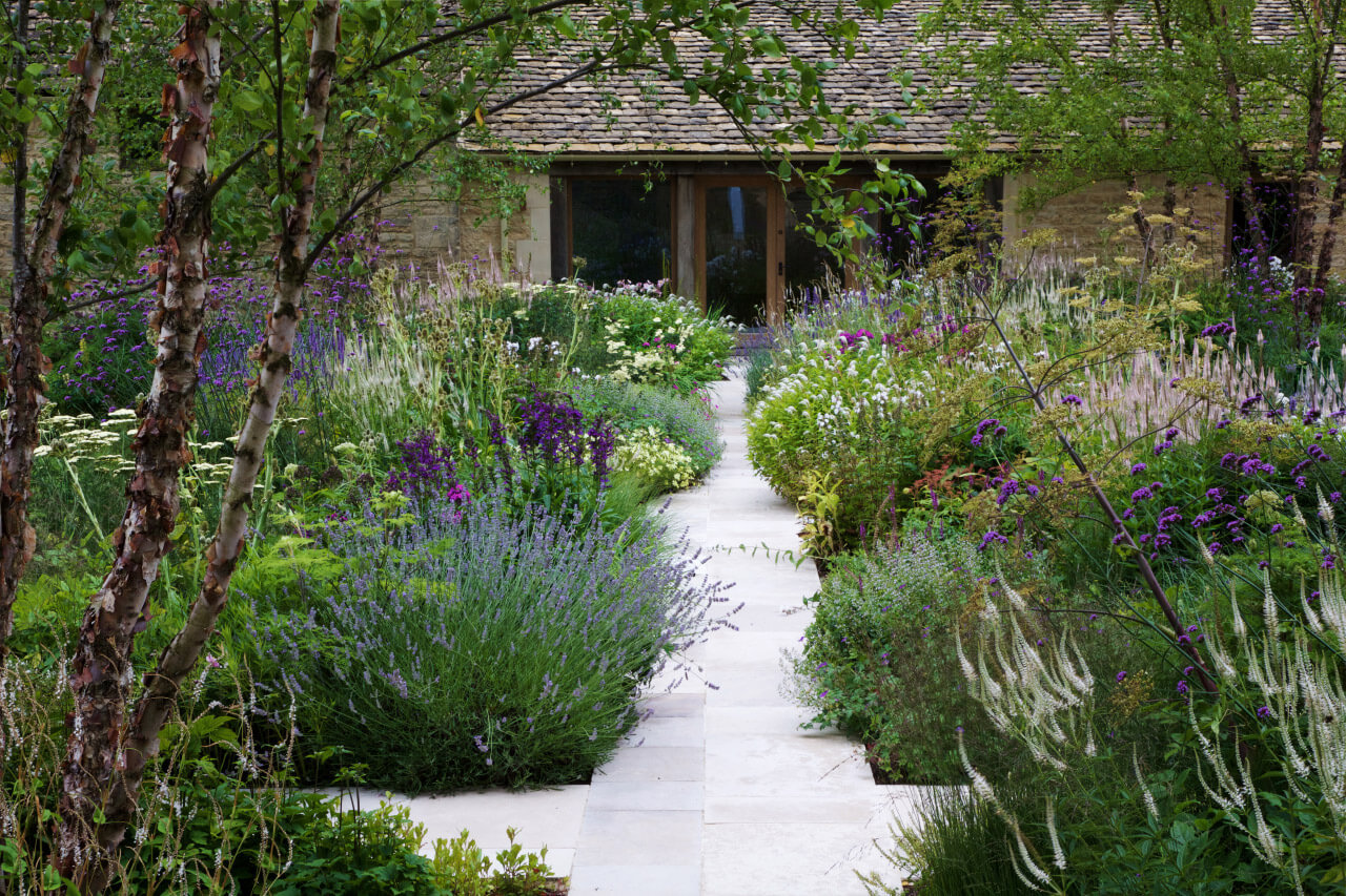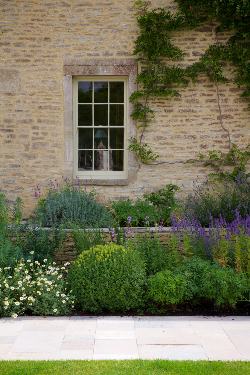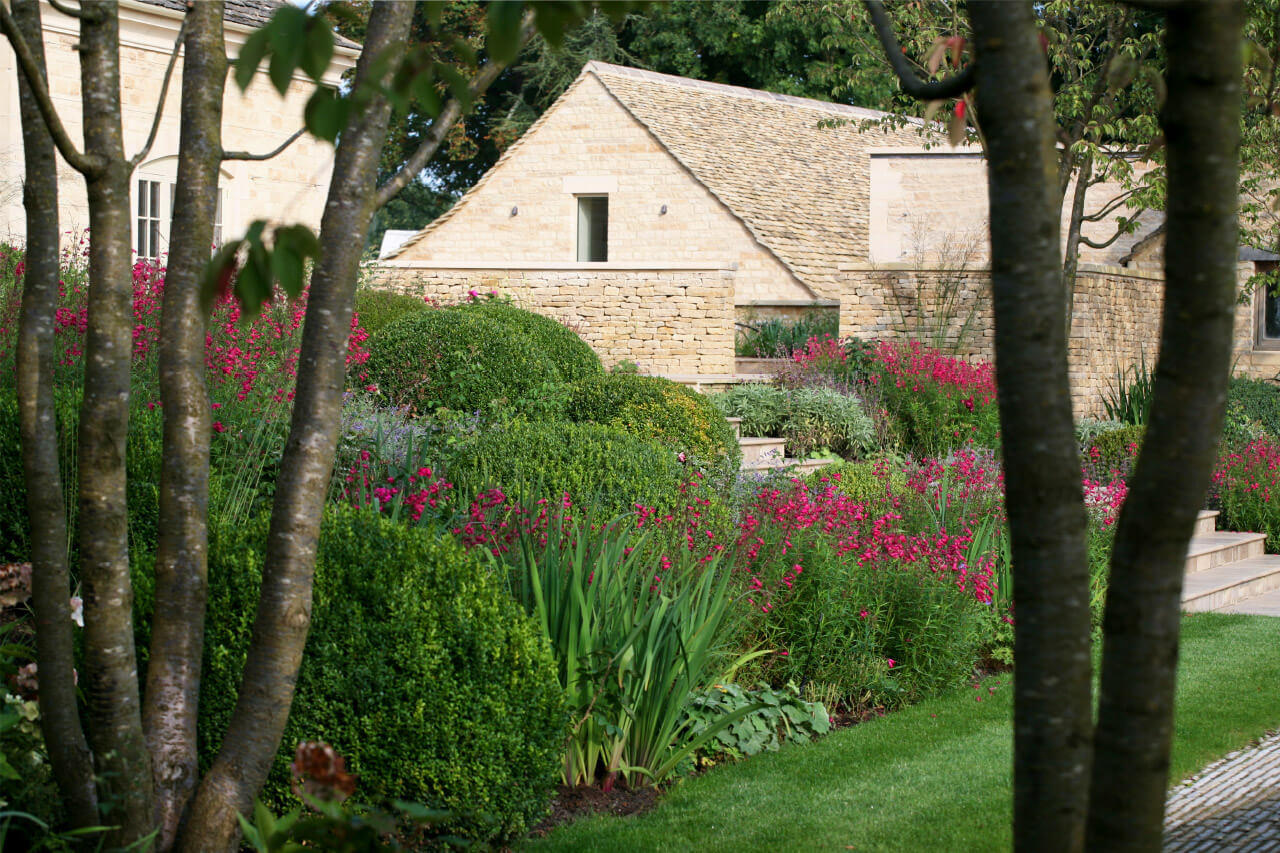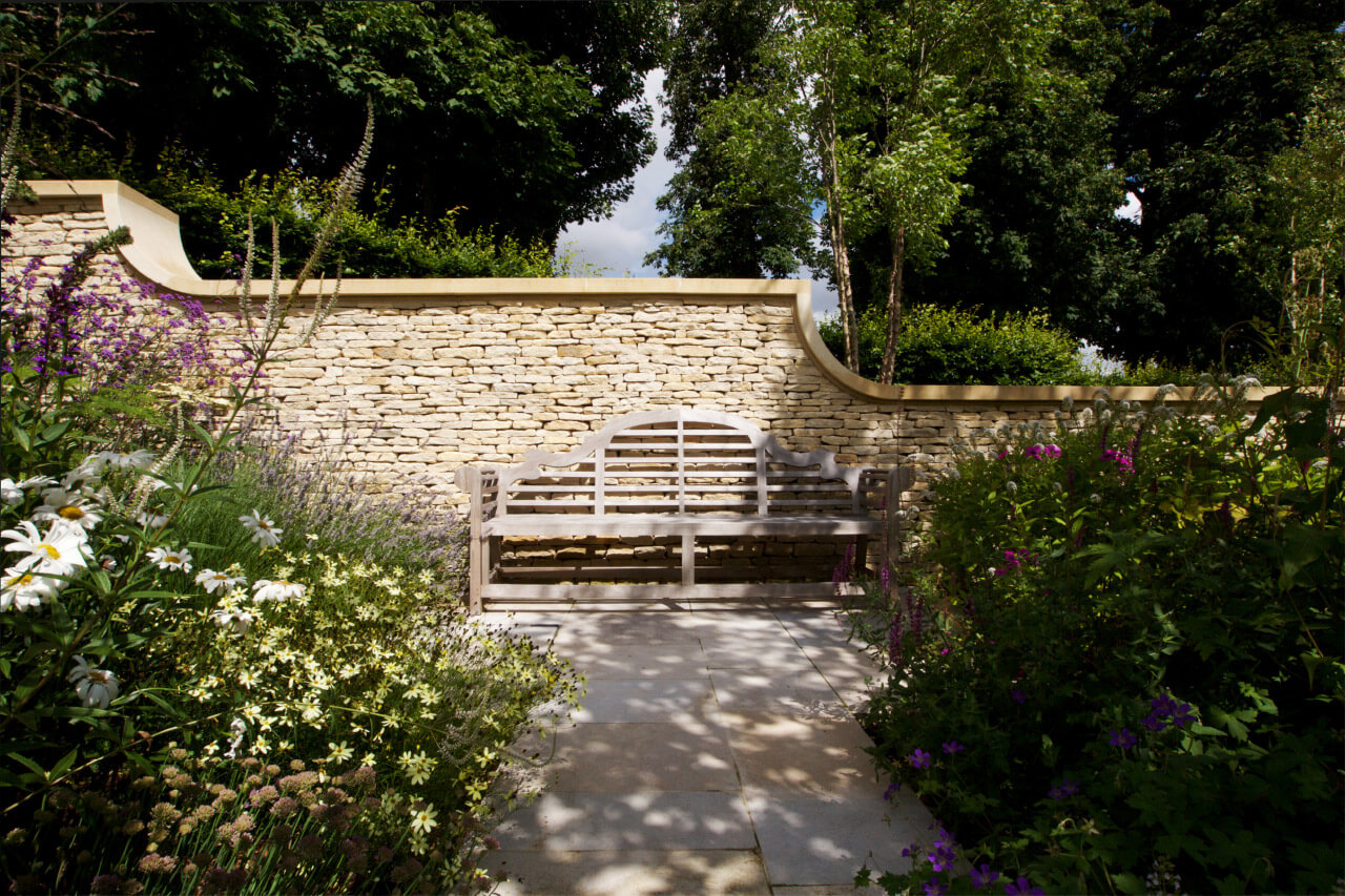 Modern techniques and design blended with vernacular tradition produce a finely crafted hard landscape which is overlaid with deep, abundant borders of select perennials and grasses.