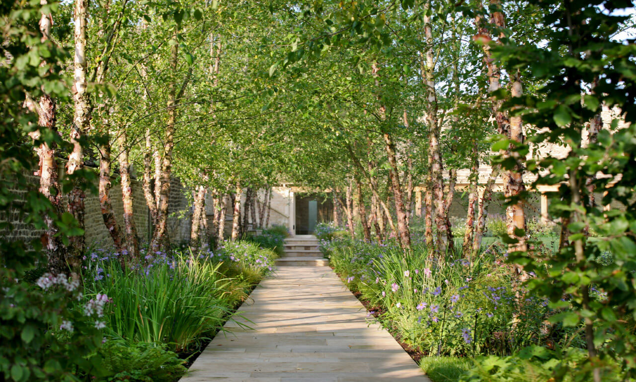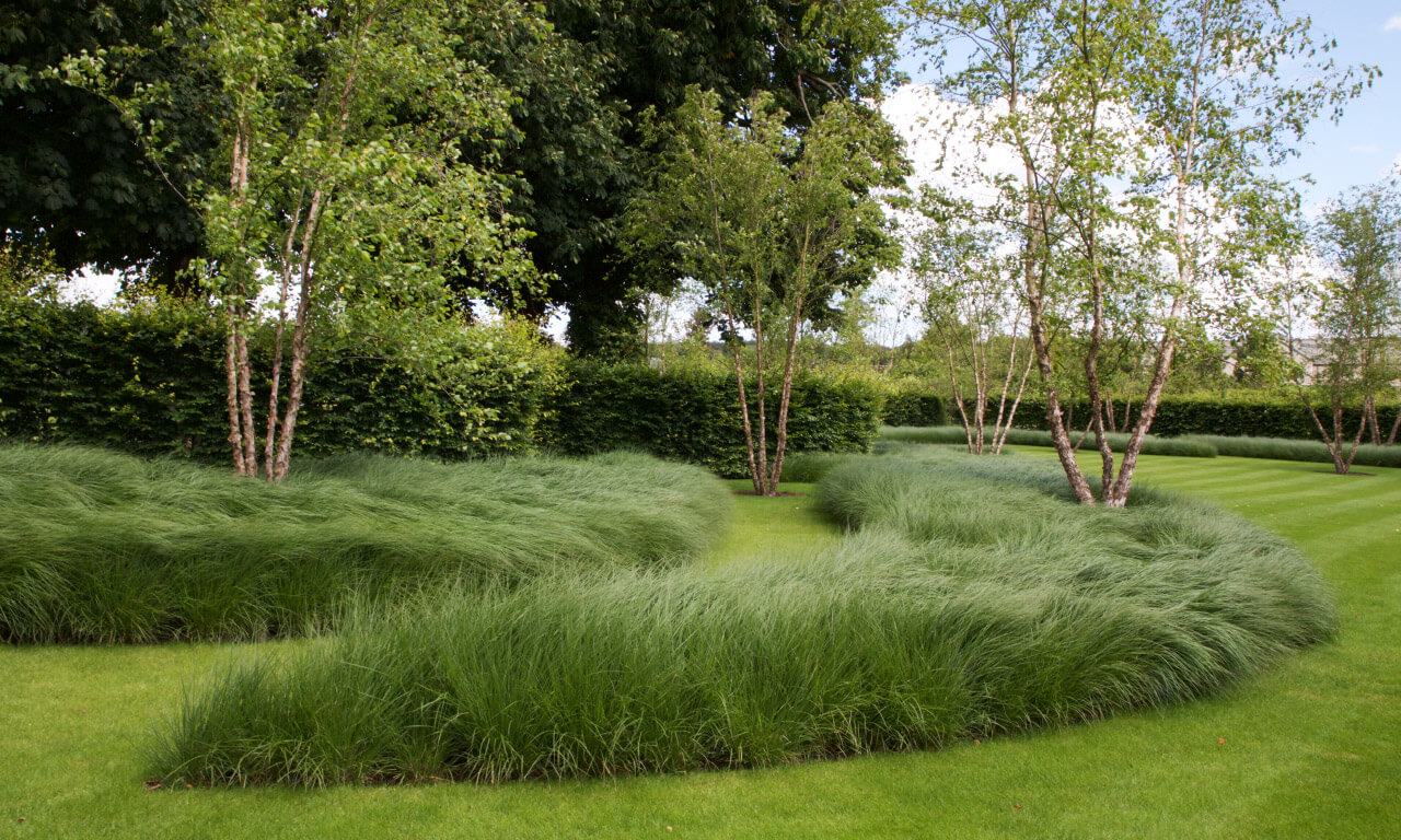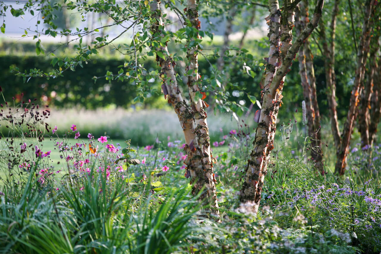 Multi stemmed trees punctuate the landscape close to the house, introducing height, framing, shadow and subtle senses of enclosure.